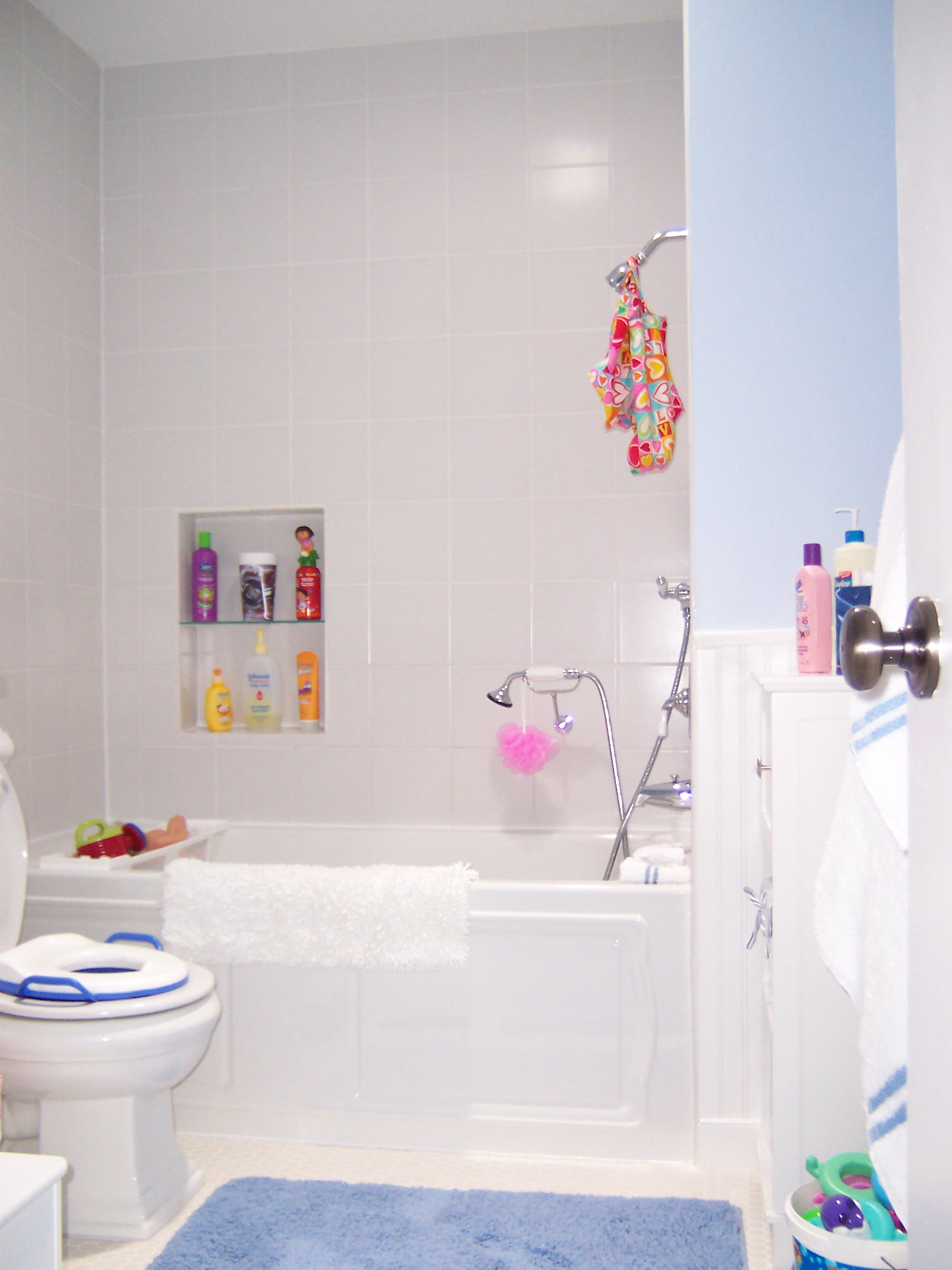 Children's cottage-style bath, with built-in bath nook. Published January 26, 2013 at 1524 × 2032 in Bath Gallery ← Previous Next → Children’s cottage-style bath with custom bath nook. Like Loading...