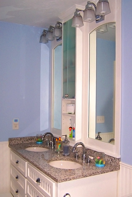 Children's cottage-styled bathroom with granite countertop and custom counter-top cabinet. Published December 4, 2012 at 427 × 640 in Bath Gallery ← Previous Next → Children’s cottage-styled bath with granite countertop and custom countertop cabinet. Like Loading...